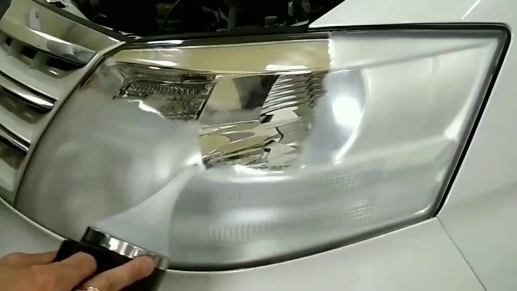 Для відновлення прозорості фар ми використовуємо технологію хімічного полірування парою. У процесі такої поліровки на поверхню фари наноситься розігрітий полімер, який заповнює всі подряпини та тріщини.